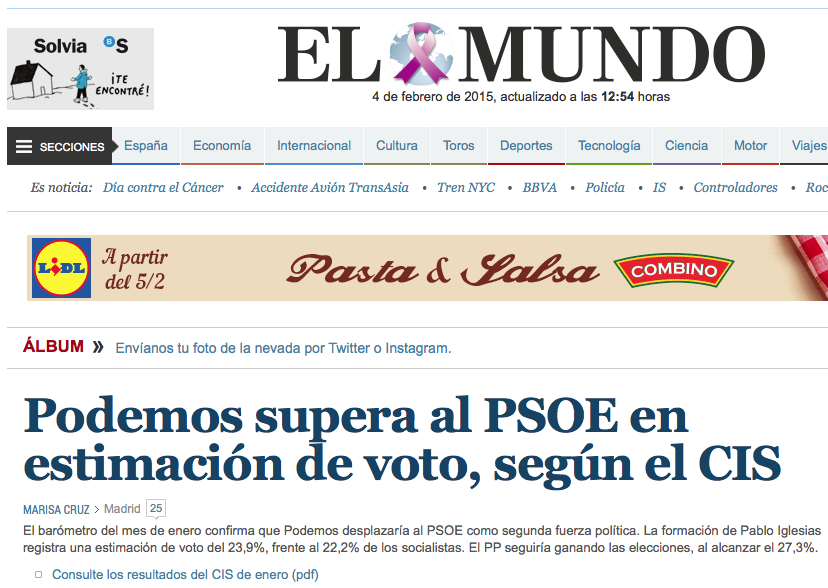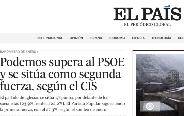 También son objeto de análisis en cada periódico el elemento gráfico que han acompañado a esta información. Una infografía que refleja los datos o una foto del líder de Podemos, Pablo Iglesias, en «plan vencedor». O también, la ubicación de esta noticia dentro de la home de cada edición digital. Porque para algunos periódicos era la principal noticia del día, y para otros, el temporal era el primer tema. O también, qué agencia de noticias ha utilizado cada periódico, si la han editado o no.
