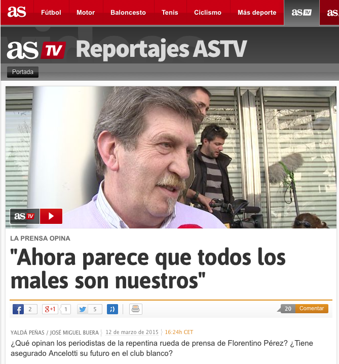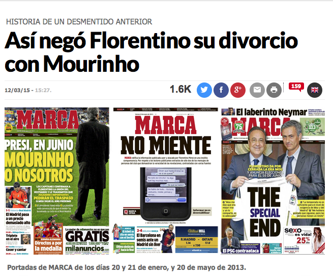 Madrid, 12 de marzo del 2015.- ¿Se imagina al Director General de una multinacional ofrecer una Rueda de Prensa para acusar al New York Times y al Washington Post de publicar mentiras?. Hoy el presidente del Real Madrid, Florentino Pérez, cuyo equipo de fútbol arrastra dos meses de resultados negativo, ha ofrecido una inesperada Rueda de Prensa y ha asegurado que los dos principales periódicos deportivos de la capital, Marca y As, publican mentiras. Incluso se ha enfrentado a los periodistas de estos medios cuando les han realizado sus preguntas. Quizás es la primera vez que un Presidente del Real Madrid realiza un ataca tan grave a dos diarios que en principio sirven de plataforma mediática a los éxitos de dicho Club. Sin embargo, vamos a abstraernos de los sentimientos, emociones y fanatismos del mundo del fútbol y veamos si hay ventajas e inconvenientes de la Estrategia de Comunicación de Florentino Pérez.