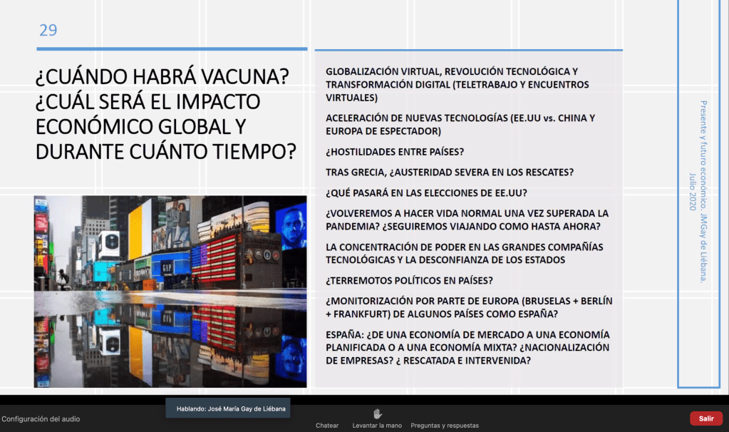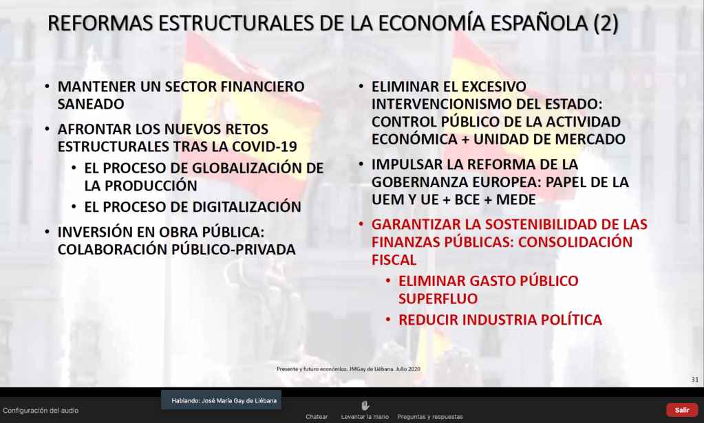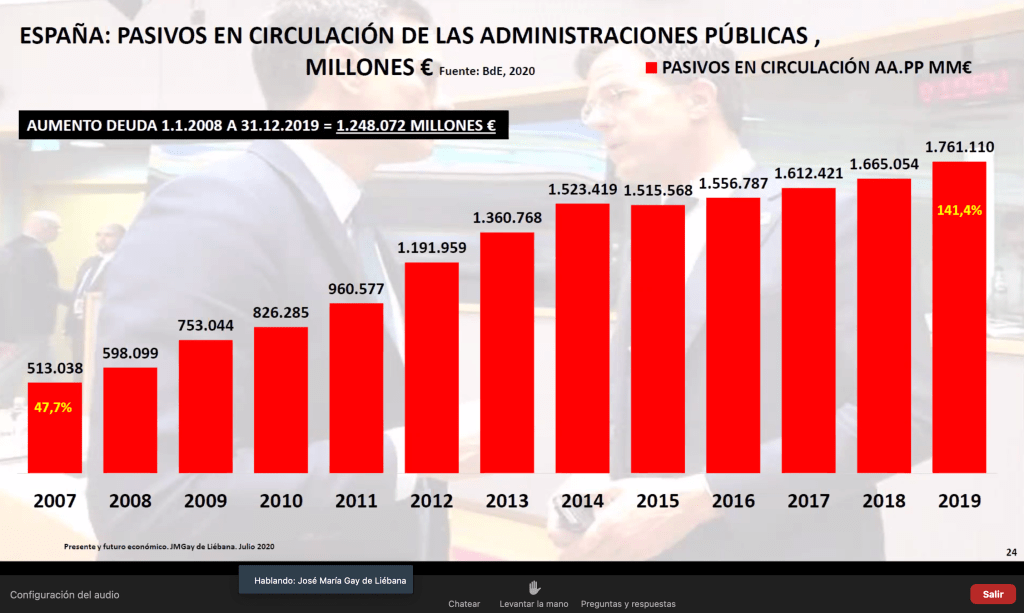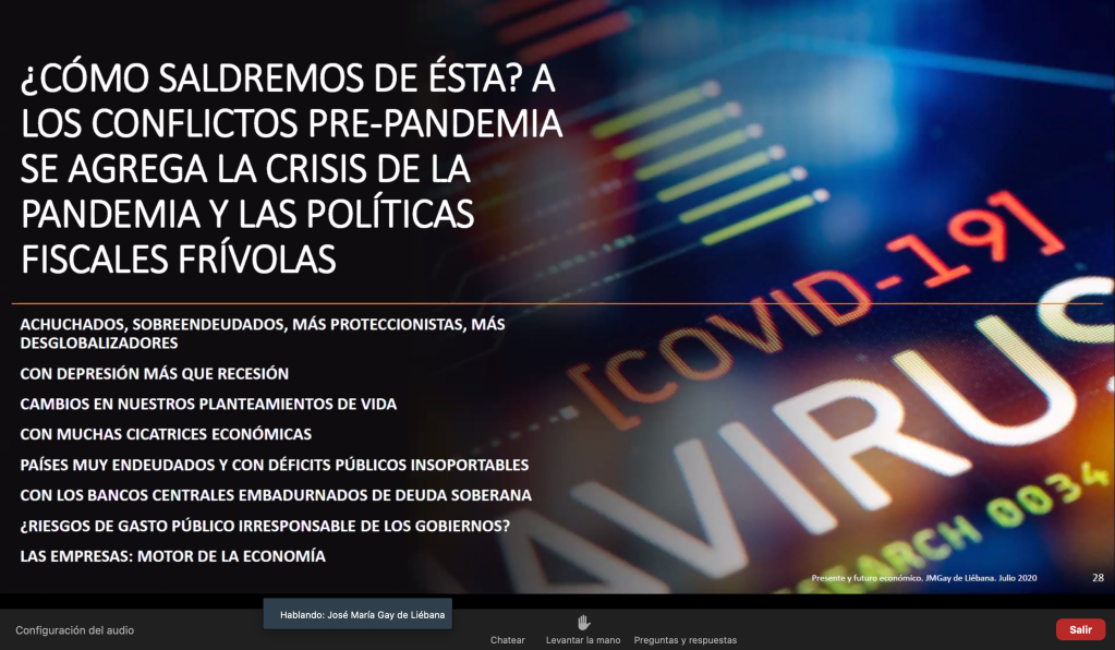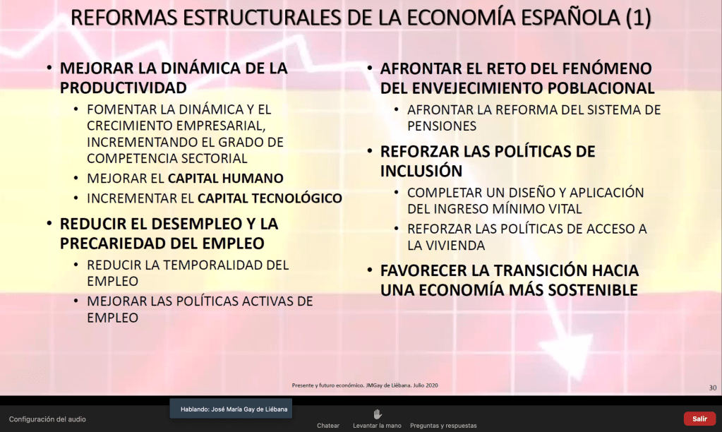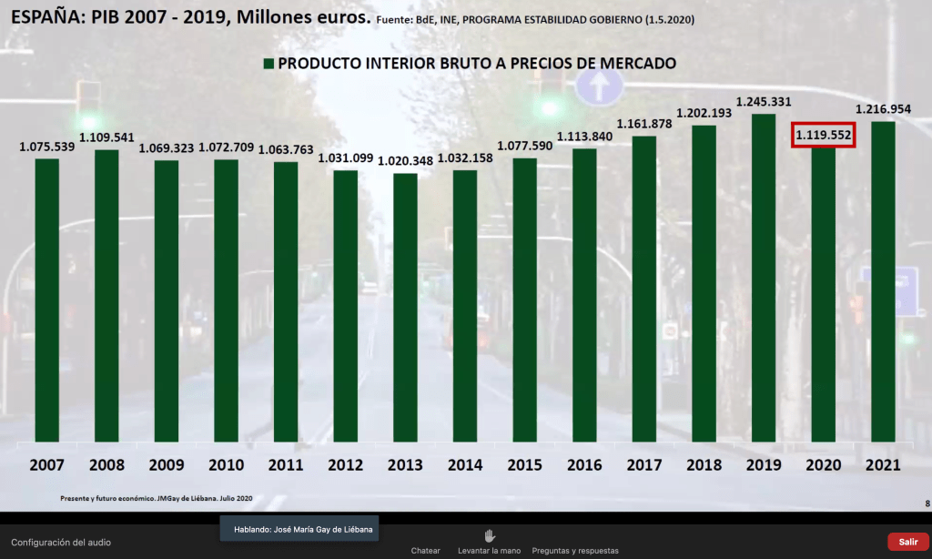 Madrid, 15 de julio del 2020.- El Profesor y Economista, José María Gay de Liébana, describe la actual depresión económica de España así: «España se precipita al abismo». Sus recetas para la reconstrucción son: